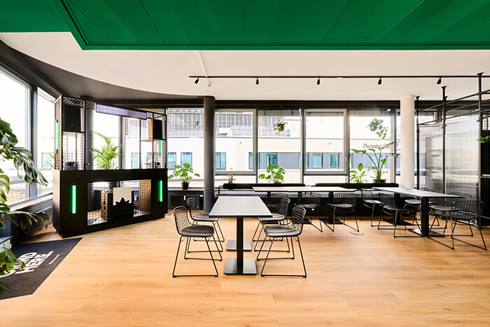 In diesem Projekt hat UNDPLUS die Social Area des Bloomwell Office in Frankfurt am Main konzipiert und umgesetzt. Das Design verbindet zwei Nutzungen: Tagsüber fungieren die Räume als offene Arbeits- und Begegnungsflächen für Gästeempfang, Austausch und Erholung der Mitarbeitenden. Abends transformieren sie sich in eine Event- und After-Work-Location.