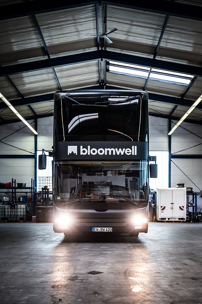 Für bloomwell wurde in Zusammenarbeit mit styleheads ein ausgebauter Doppeldeckerbus realisiert, der als vielseitiges Eventmodul auf Festivals und Veranstaltungen eingesetzt werden kann. Der Bus verfügt über zahlreiche Bereiche auf zwei Etagen und ein öffnendes Cabrio-Dach, das für maximale Entfaltung und Erlebnisqualität sorgt.
